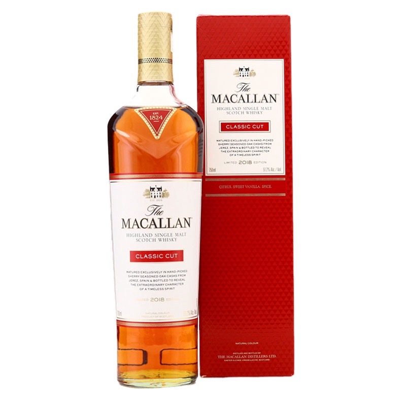 麥卡倫 Classic Cut – 2018 年版為年度限量的經典復刻系列第二款。釀酒師 Ian Morrison 特別選擇了 51.2% 的酒精濃度,因為這個濃度最能展現非凡的雪莉橡木桶賦予的明顯甜味與完美平衡的風味。 深呼吸並靜下心 10-15 分鐘後,柑橘、甜香草和辛香料的風味將變得明顯,同時帶有舒心而綿長的橡木風味餘韻。 Classic Cut 2018 年是一款令人完全沉醉其中的單一麥芽威士忌。