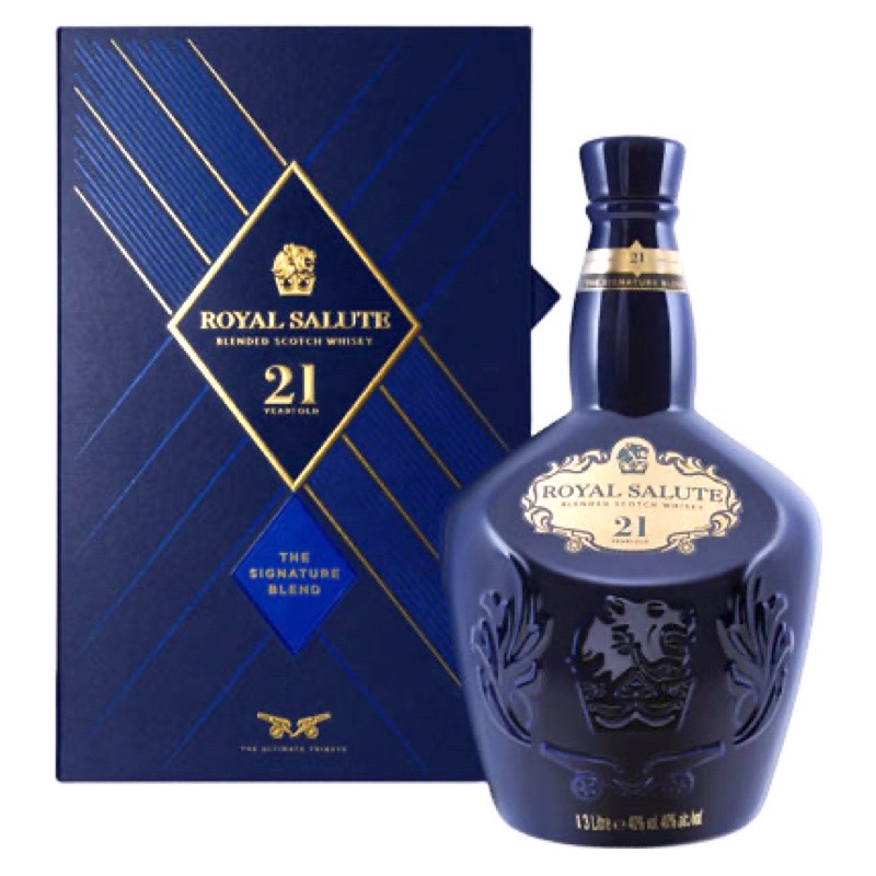 源起為慶祝英國女皇伊莉莎白二世於1953年登基加冕所推出的紀念酒,並以皇家海軍鳴放21響禮炮的傳統精神命名,表達對皇室的極致禮讚。為了與伊莉莎白女皇冠冕上的珍貴紅、藍寶石及翡翠相互輝映,亦有源自十九世紀以前的傳統威士忌酒壺,獨特手工製作之紅、藍、綠三色珍藏瓷瓶。 舉世聞名的蘇格蘭威士忌皇家禮炮21年,是酒類禮品王國中的至尊品牌。在贏得2005年國際烈酒大賽的金牌獎後,又在世人尊崇之「極品中的極品」威士忌大賞會中,經票選成為蘇格蘭調和式威士忌裡「極品中的極品」。